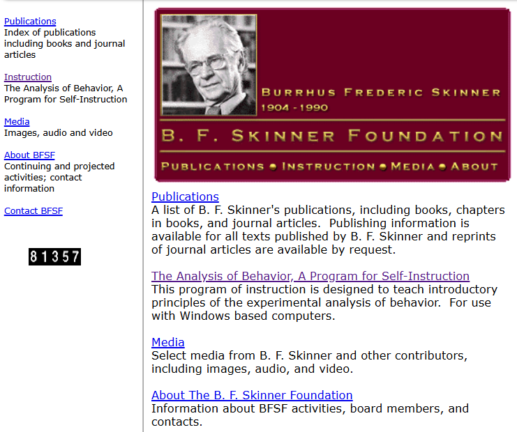 The BF Skinner Foundation website in 2000