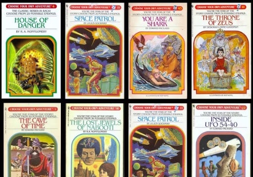 Shortly after the explosion of educational Programmed Instruction in the 60s (approximately 1976), there was a long-running and immensely popular series of “choose your own adventure” books using the same branching format. Less famous is Crowder’s series of books, TutorText, which taught readers various subjects using the branching format, ceasing publication around 1972 after 32 volumes.