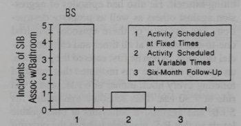 He concludes with a stunning illustration: an institutionalized man with high rates of SIB was on an activity schedule, a very typical intervention. When his fixed time schedule was switched to a variable time schedule of activities (e.g., scheduled hygiene within a 1 hour time window instead of at a specific time), his SIB reduced significantly.
